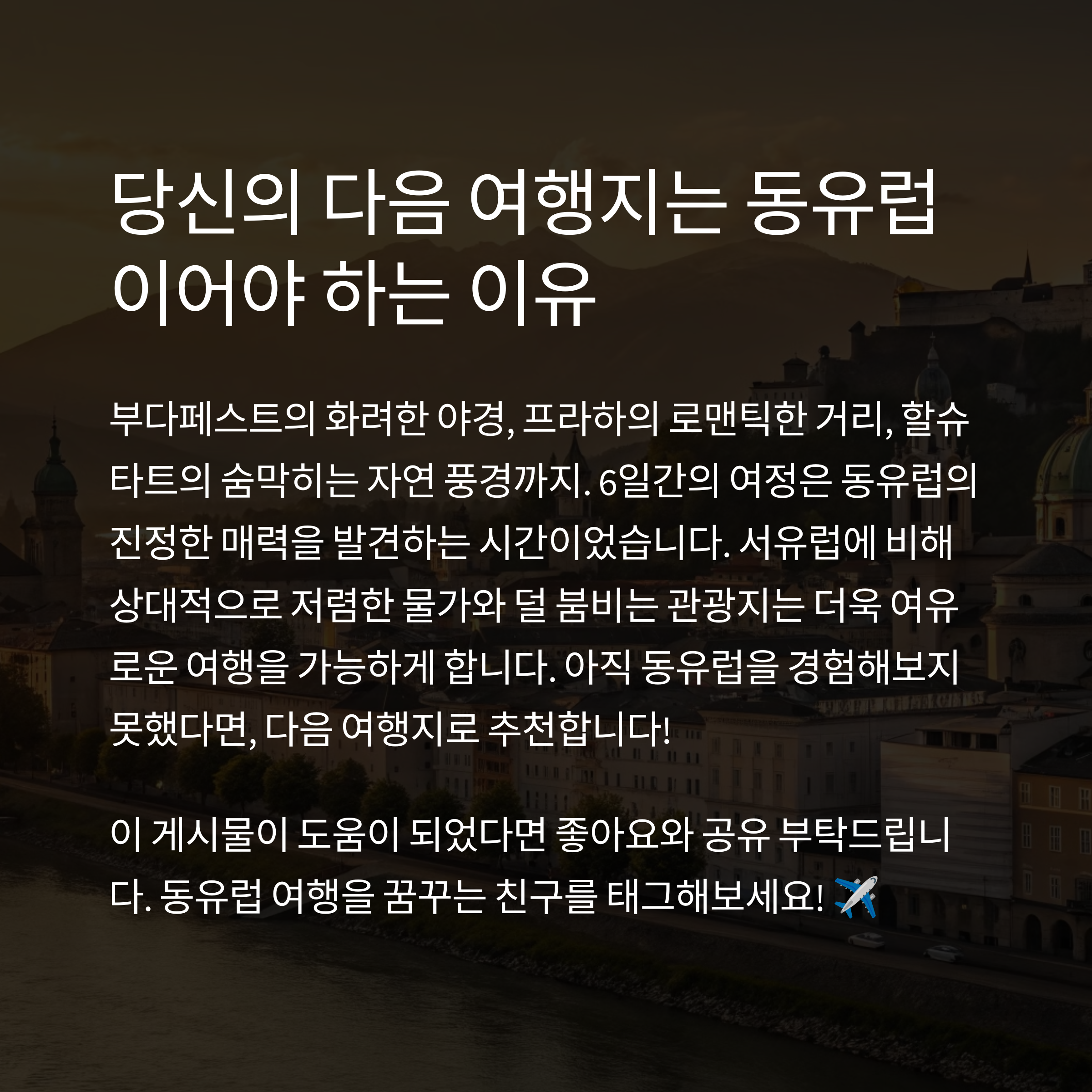 특히 동유럽은 다양한 매력을 지닌 도시들로 여행객들에게 끝없는 영감을 줍니다.