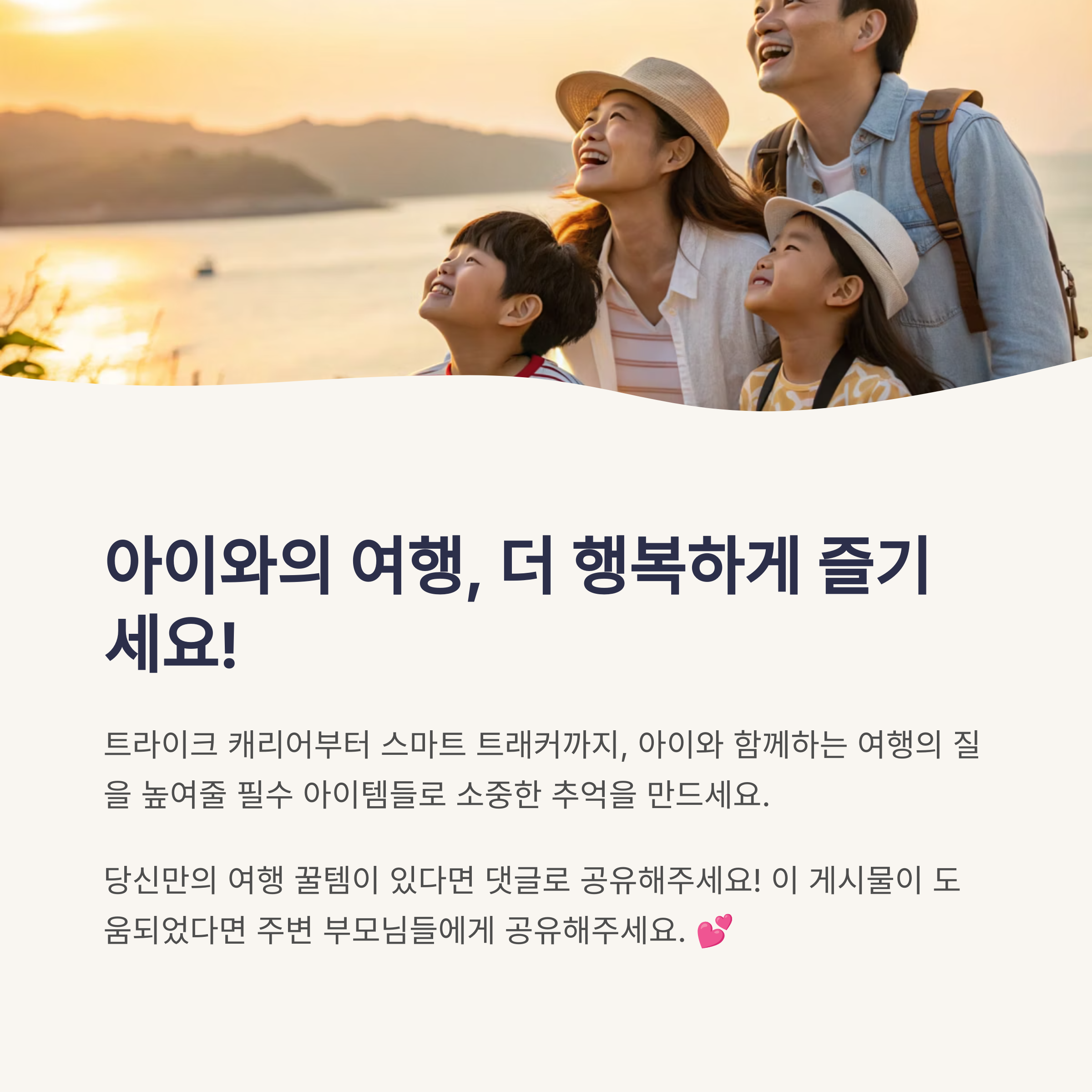 작은 준비가 아이와의 여행을 더 즐겁고 편리하게 만들어줍니다.