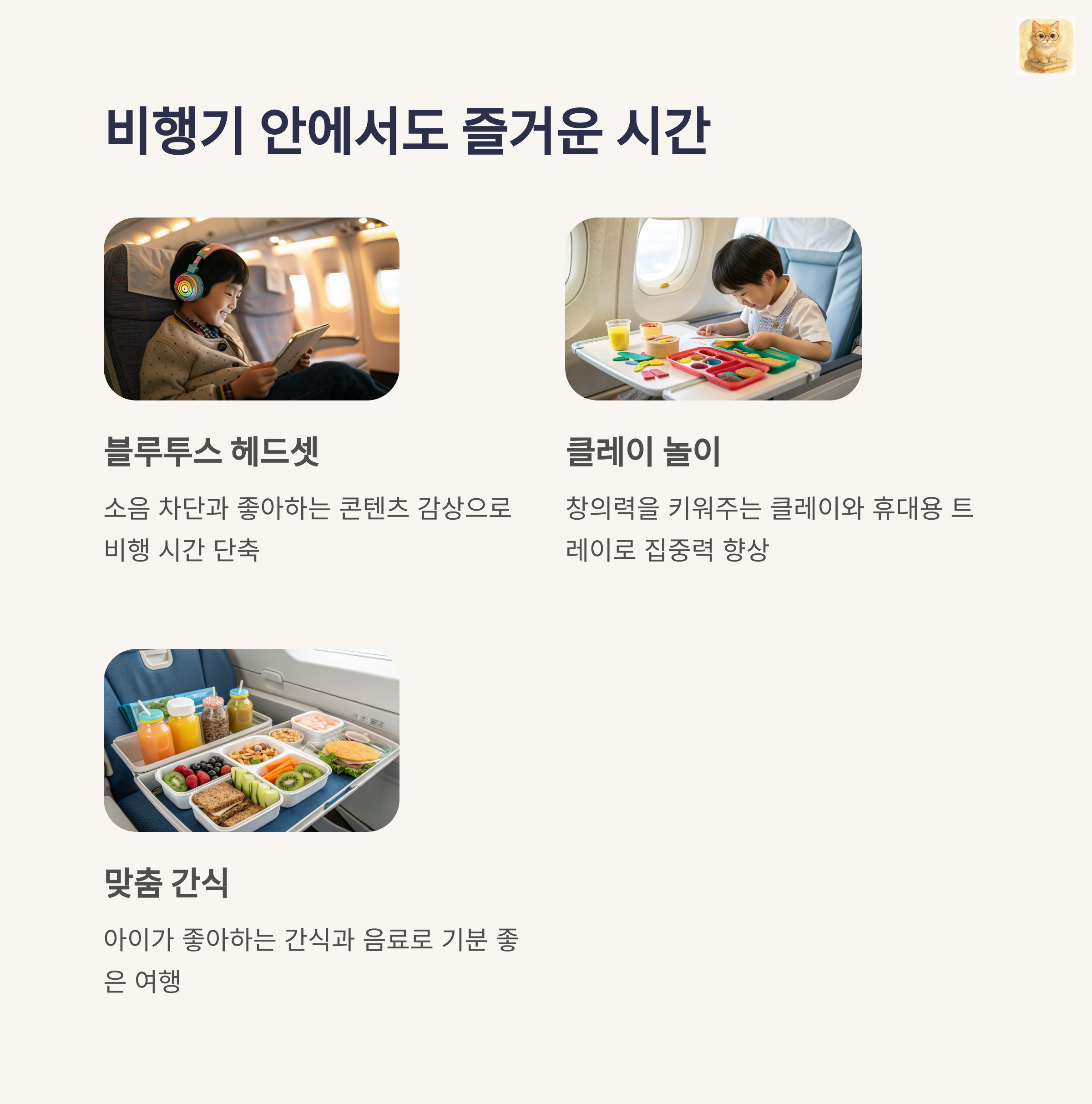 비행기 안에서 아이가 지루해하지 않도록 다양한 준비물이 필요합니다.