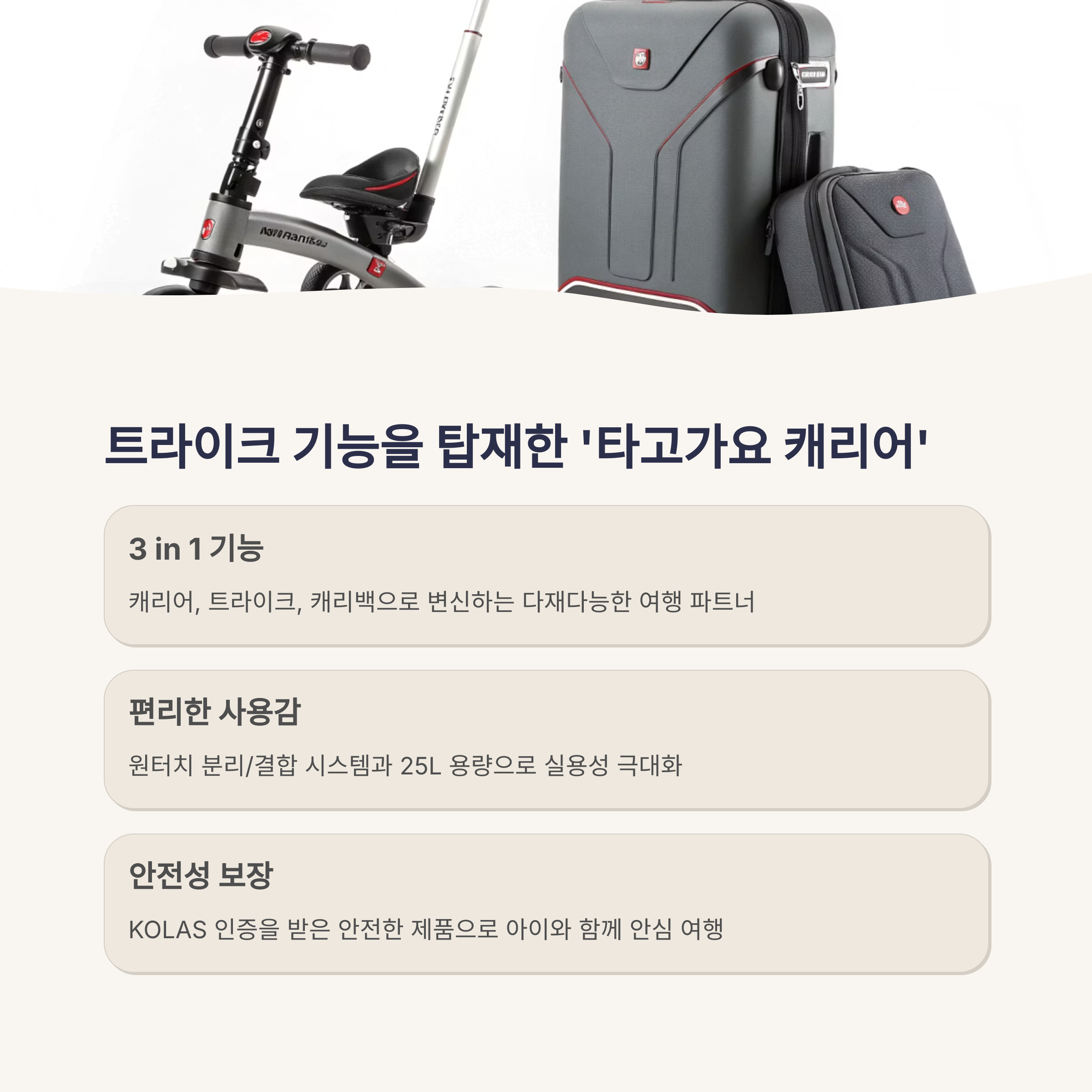 이럴 때 트라이크 기능이 포함된 캐리어는 정말 유용한 선택이 될 수 있습니다.