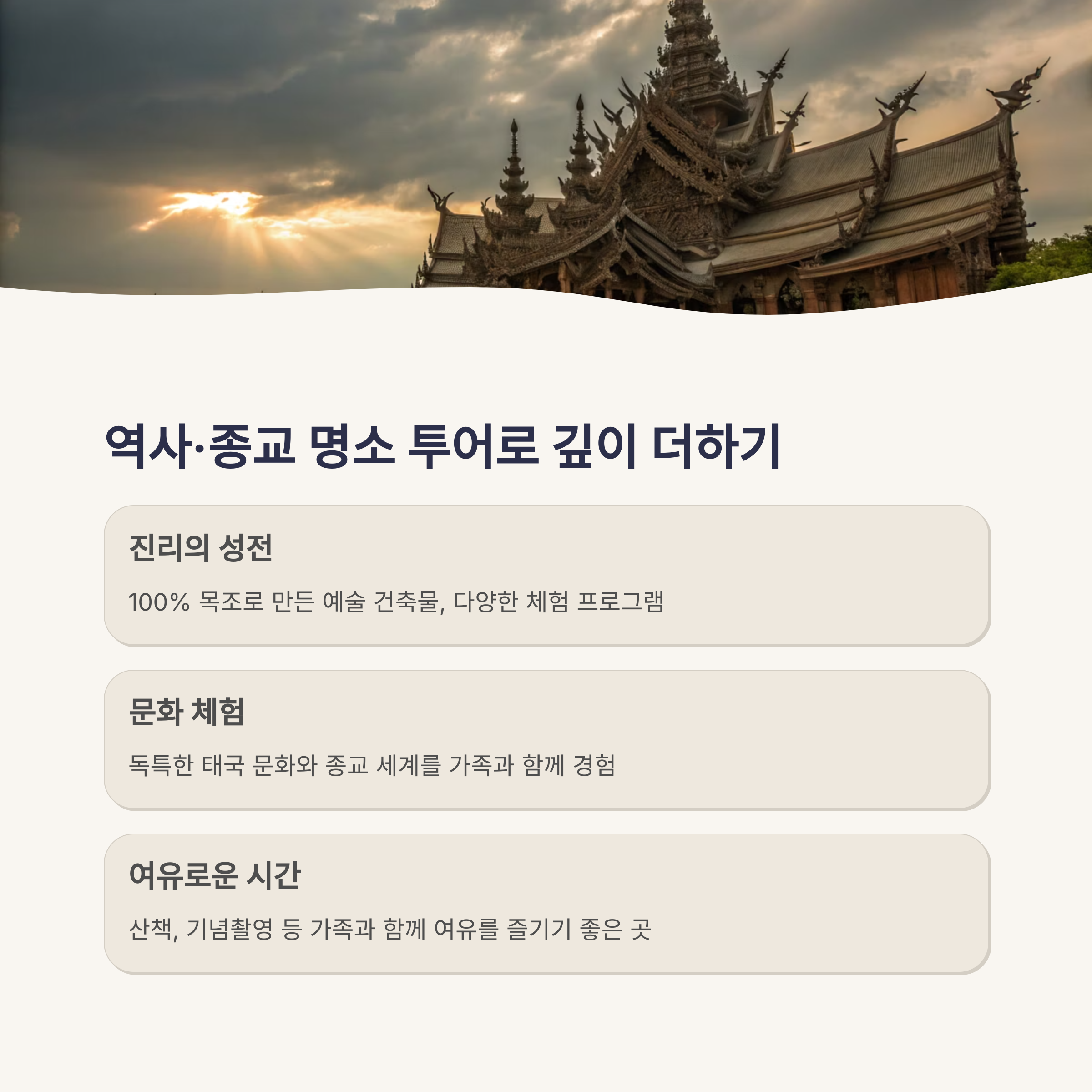 A. 미니 시암과 진리의 성전은 태국의 역사와 문화를 배울 수 있는 교육적인 장소입니다.