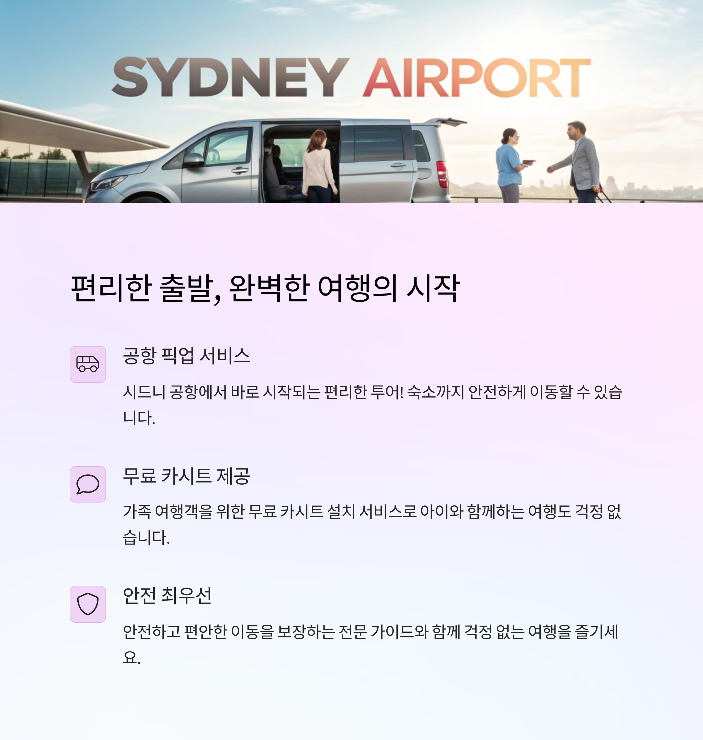 공항 픽업 서비스는 숙소까지의 안전한 이동을 보장하며,